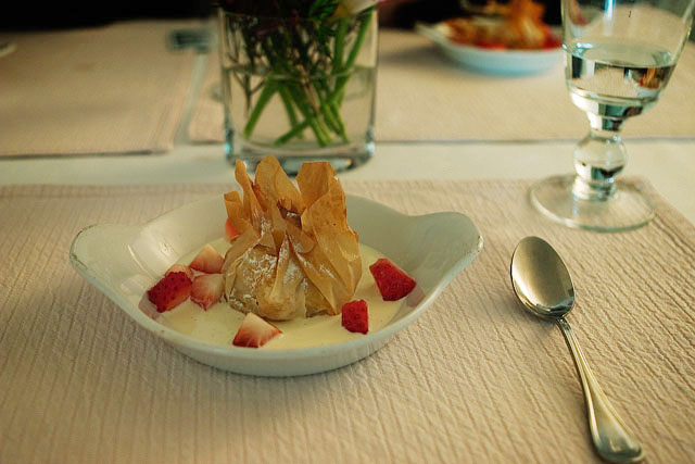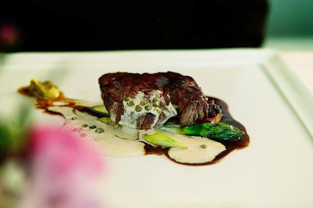 “프랑스 요리는 충분한 시간을 두고 천천히 음미하며 즐길 수 있어야 해요.” 김 주방장은 이렇게 강조했다. 그는 모든 음식은 주문 즉시 만든다. “방금 요리한 따뜻한 온기가 그대로 전해지도록 하기 위해서 입니다.” 윤 제과장이 그 맛에 반해버린 메뉴는 전채요리인 ‘브리니를 곁들인 새우소테’와 ‘안심스테이크’다. 브리니를 곁들인 새우소테요리에서 브리니는 호밀가루에 허브를 보태 반죽한 다음 팬케이크처럼 얇게 구운 것으로 스폰지처럼 구멍이 나 있으면서 촉촉하고 부드럽다. 여기에 새우와 바질페스토소스 향은 완벽한 조화를 이룬다. 포트와인소스와 핑크페퍼 크림소스를 곁들인 안심스테이크는 그 선홍빛 육즙이 풍부하고 향긋하다. 제대로 구워진 안심과 어울린 소스는 살짝 단맛이 돌면서 그 부드러운 향이 안심의 풍미를 돋운다.