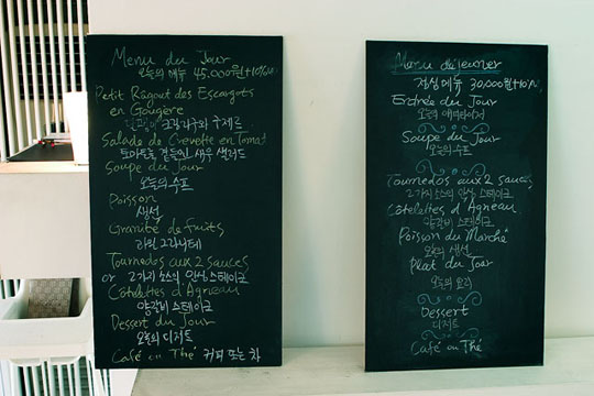 너무도 유명한 레스토랑이기에 추천도 필요 없을 듯 하다. 누구라도 만족할만한 식사를 할 수 있기에. 코스요리가 점심에는 3만원, 저녁에는 4만5000원, 10만원으로 다소 부담이 될 수 있는 가격이지만 다른 프랑스 레스토랑의 절반 가격에 불과하다. 베니건스에서 스테이크 세트를 먹을 돈으로 프랑스 코스 요리를 즐길 수 있다는 것만으로도 흥분이 되지 않는가?